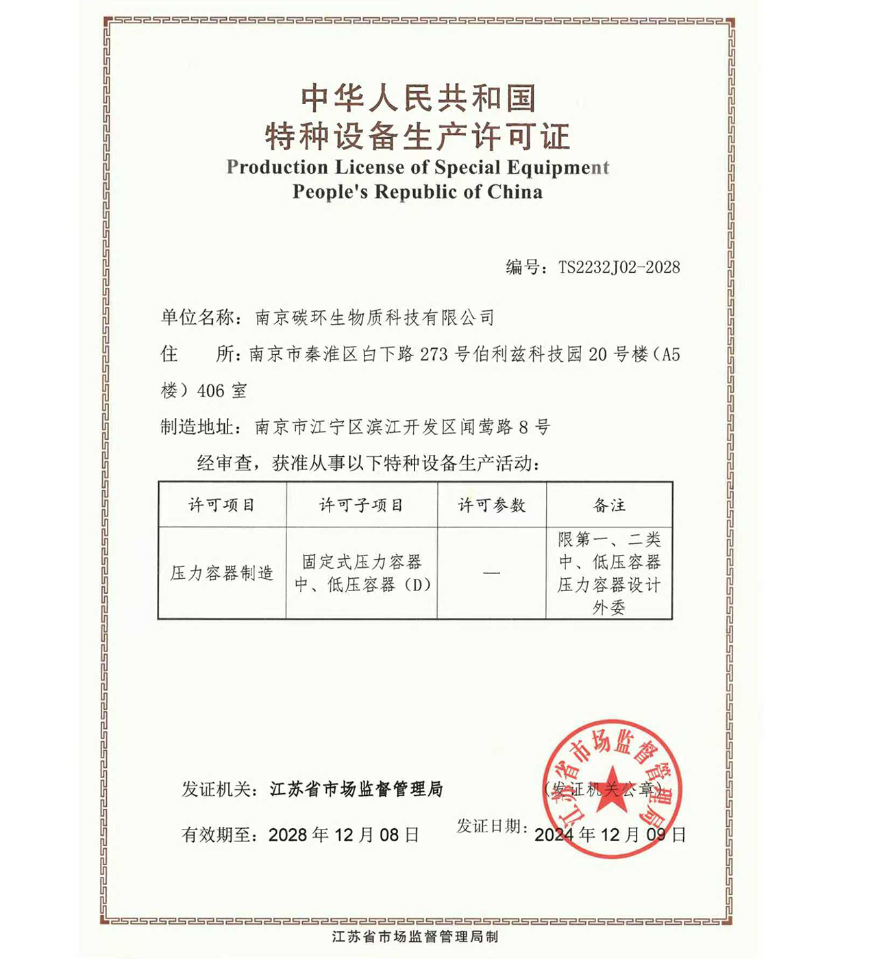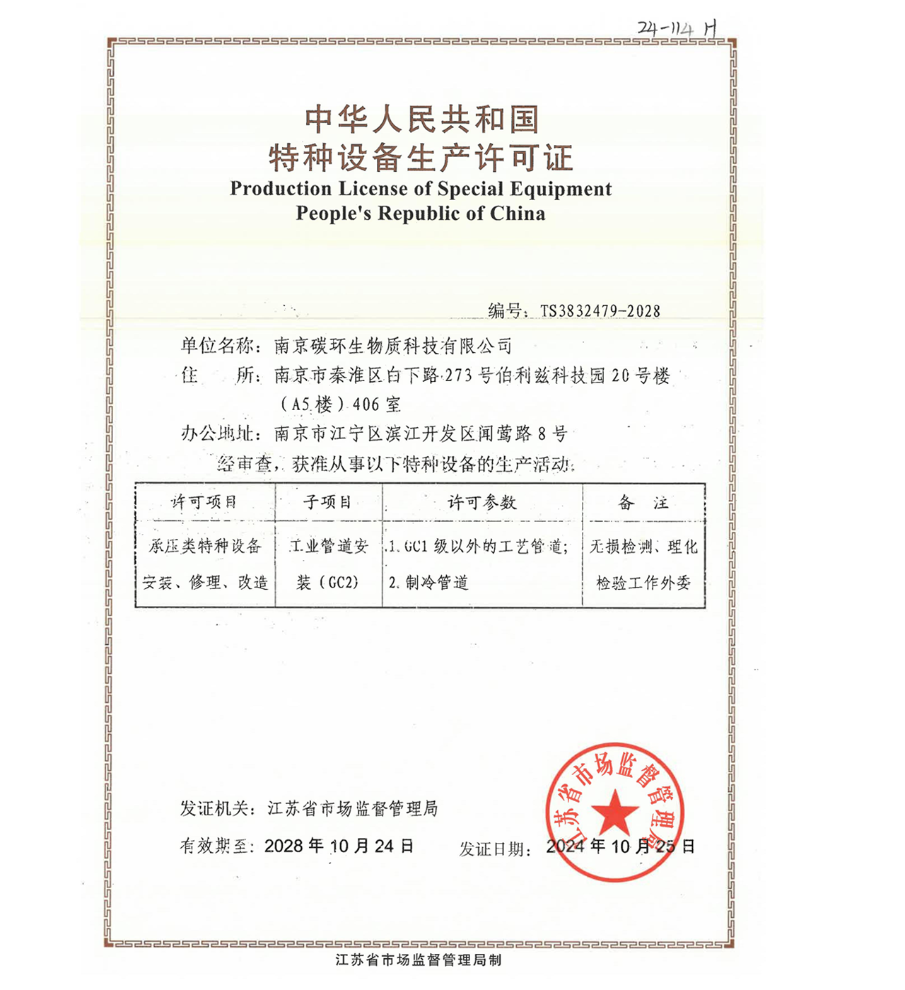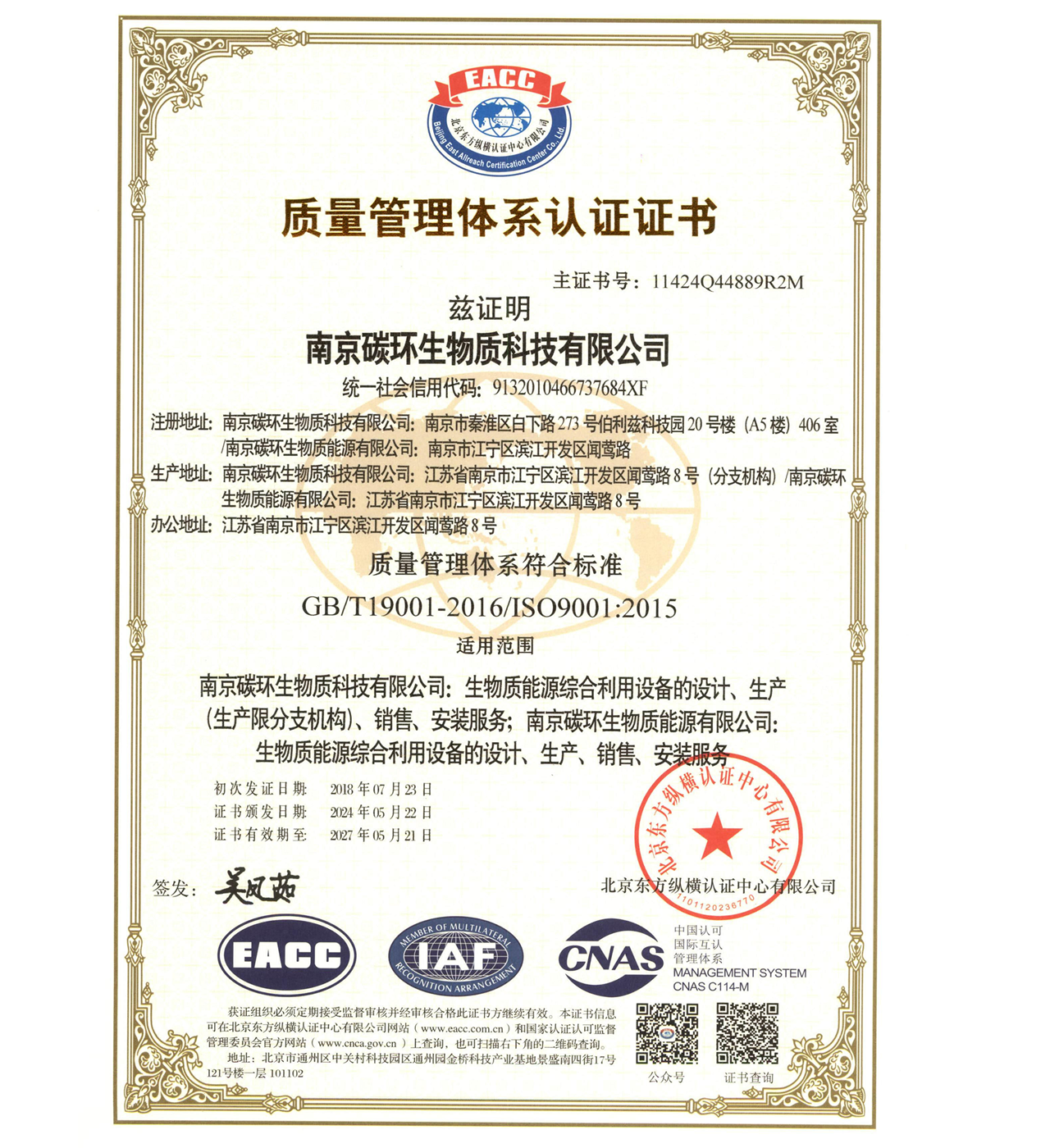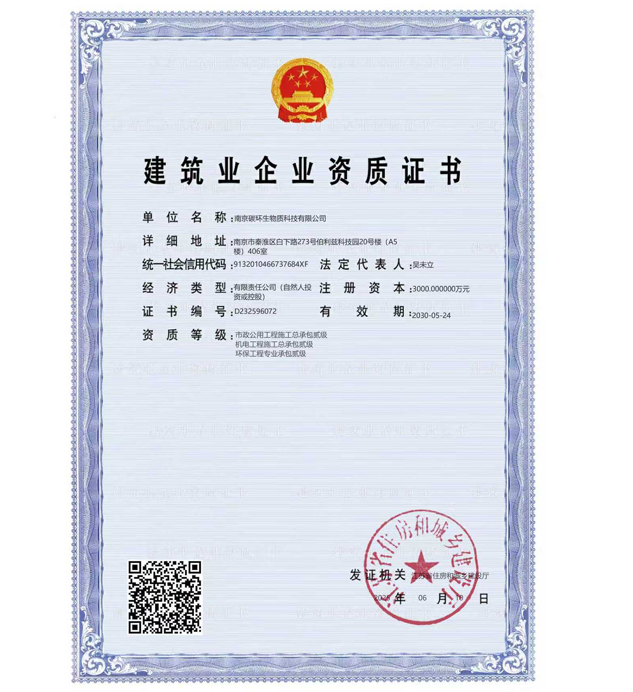 南京碳環(huán)生物質(zhì)科技有限公司還有:環(huán)保工程總承包資質(zhì)、壓力管道安裝資質(zhì)、機電設(shè)備安裝資質(zhì)等。