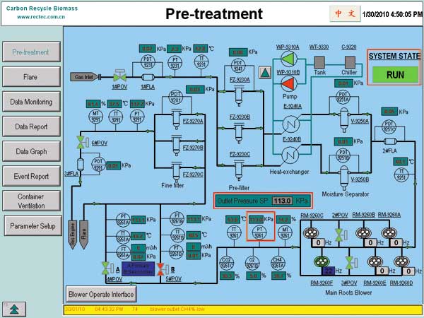 In landfill gas utilization project, SCADA system consists of control and monitoring functions for the whole process, especially SCADA is used to monitor gas treatment equipments and power generators. The CDM monitoring data is transmitted to SCADA to form record reports for CER’s. SCADA system also features network communication function for remote supervisory via LAN and Internet.