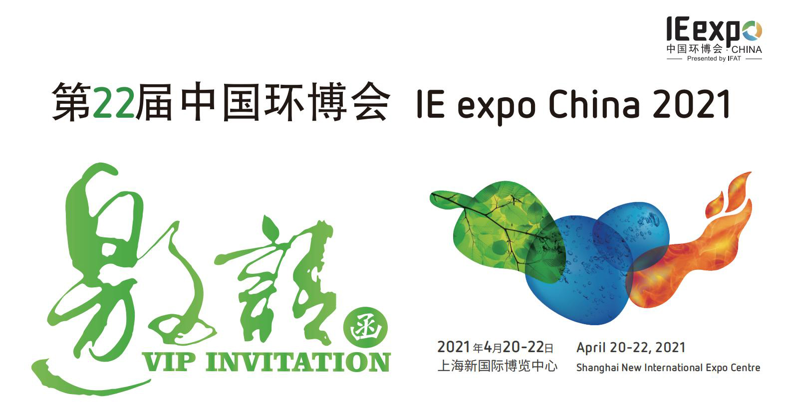 誠摯邀請您參加2021年4月20日-22日在上海新國際博覽中心舉行的第22屆中國環(huán)博會。